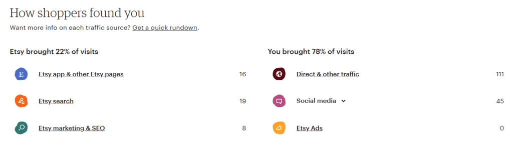 ざっくりですがEtsy内のアクセスが22%、他は外部(SNS等)からの流入ということです。